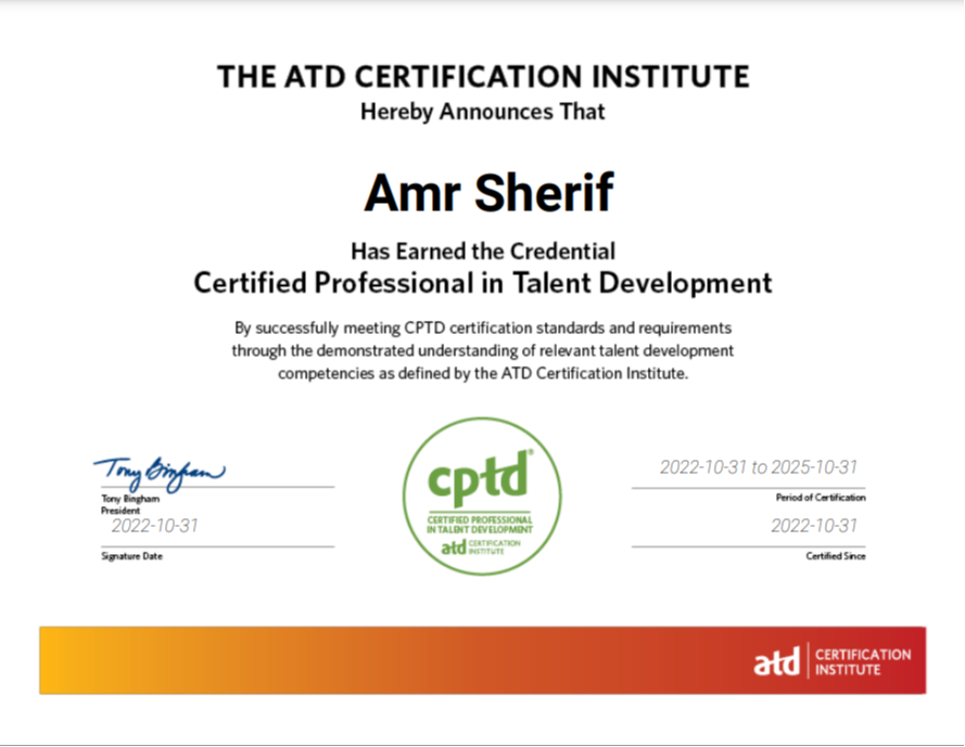 Certified Professional in Talent Development (CPTD)... From Association of Talent Development (ATD)